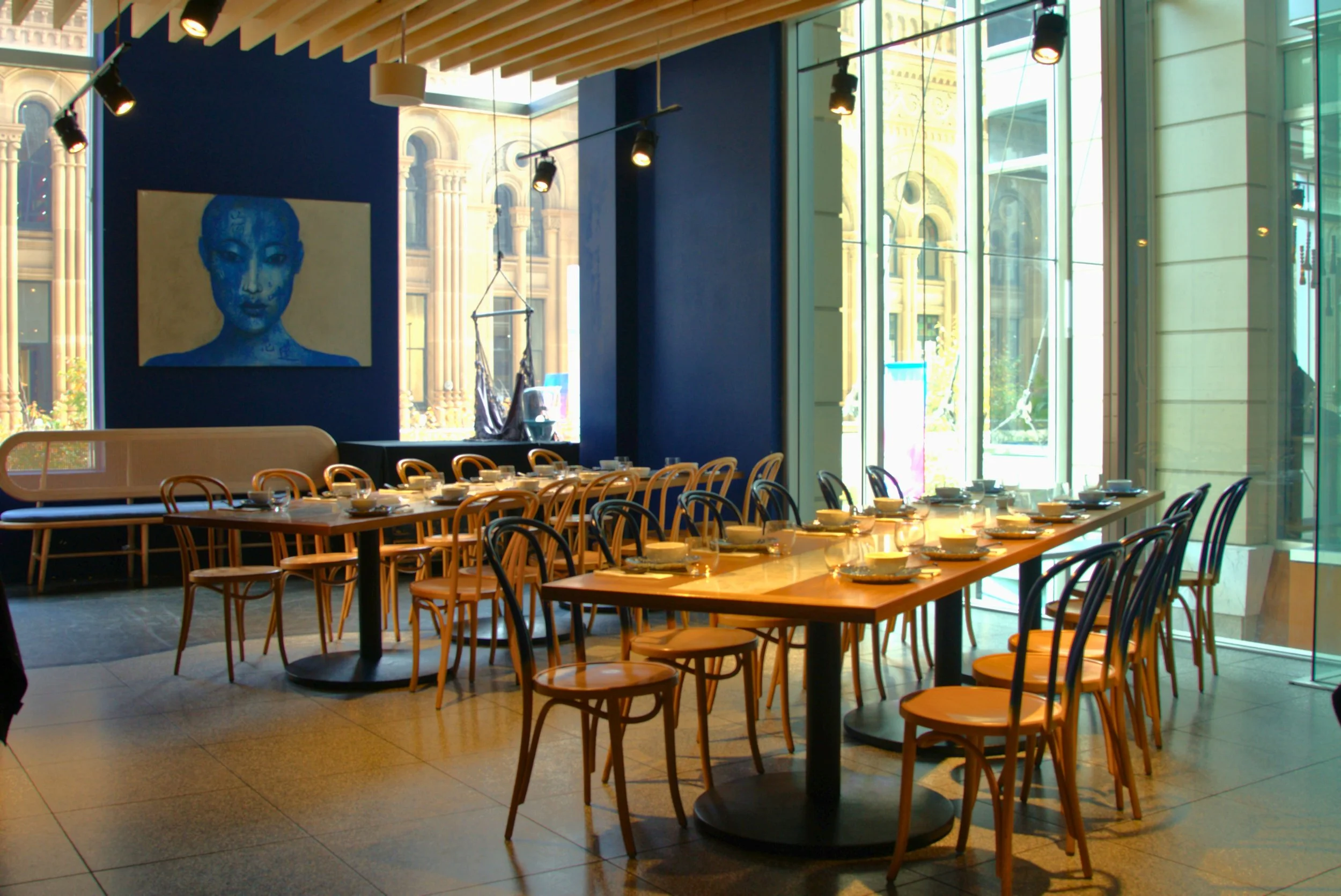 Our second largest private dining room, the Yin Yang, is ideal to host your function in a more private and exclusive setting. The Yin Yang room is fully private, enclosed by warm timber panels on one side, and bright glass windows overlooking the iconic Queen Victoria Building on the other, providing the perfect environment for team lunches or dinners, business meetings, and special occasions with extended family and friends.
